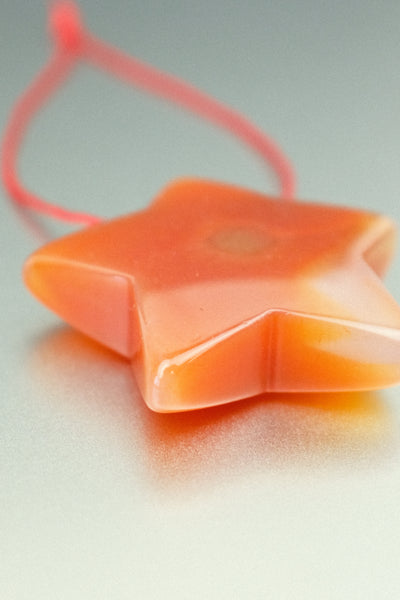 This beautiful carnelian crystal measures approximately 4mm in height and is elegantly suspended from a red string. Perfect for adding a touch of sparkle to your festive decor!