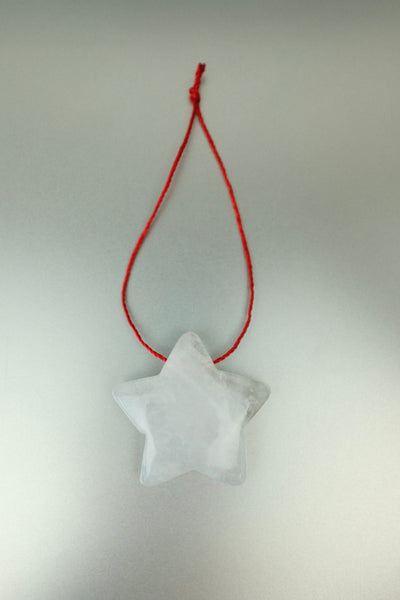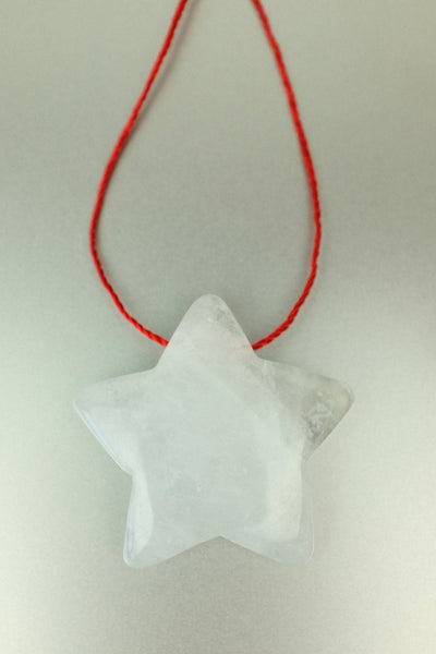 This beautiful clear Quartz crystal measures approximately 4mm in height and is elegantly suspended from a red string. Perfect for adding a touch of sparkle to your festive decor!