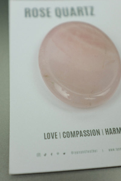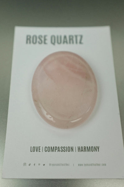 A polished rose quartz thumb (worry) stone with a soothing thumb indent—perfectly shaped for pocket carry or meditation. Embrace self-love, calm anxious thoughts, and open your heart with this beautiful touchstone.