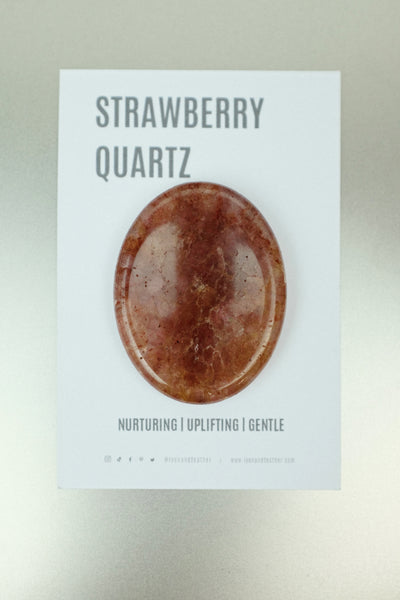 A polished Strawberry Quartz thumb (worry) stone—perfectly palm-sized (approx. 3–4 cm), with a thumb groove for comforting tactile use. This rosy-hued crystal blends emotional healing, calming energy, and heart-centered clarity—an ideal companion for daily stress relief and self-love rituals.