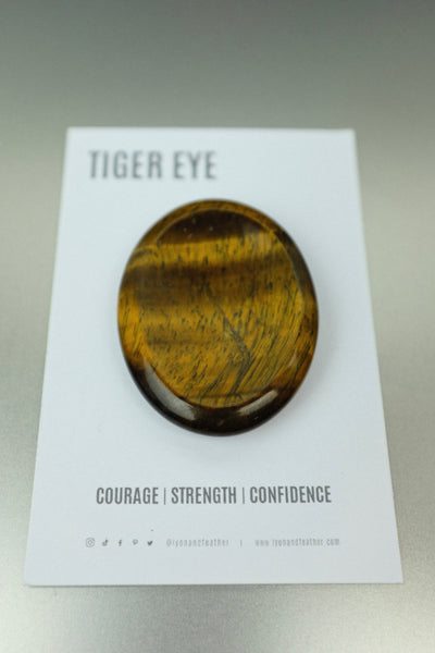 A polished tiger‑eye thumb (worry) stone—perfectly sized for your hand. Designed to soothe anxiety, boost confidence, and sharpen focus whether in your pocket, meditation ritual, or workspace.