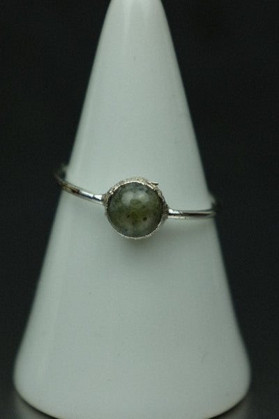 A simple yet striking labradorite electroformed silver-plated ring, perfect for everyday wear.