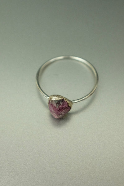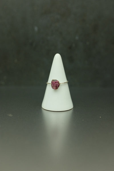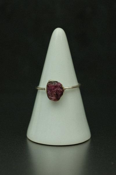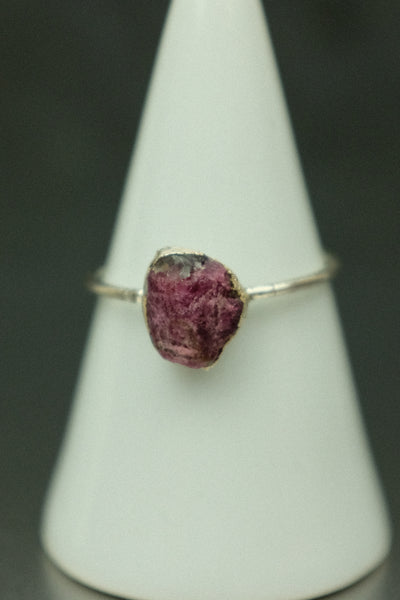 A simple yet striking watermelon tourmaline electroformed silver-plated ring, perfect for everyday wear.