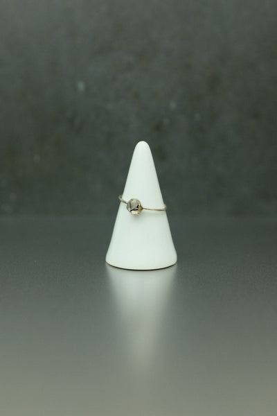The rutilated quartz stone measures approximately 5mm long, 5mm wide, and 4mm tall. Wear it alone for an elegant touch or stack it with others.