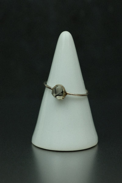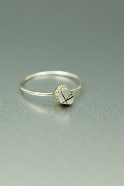 A simple yet striking rutilated quartz electroformed silver-plated ring, perfect for everyday wear.