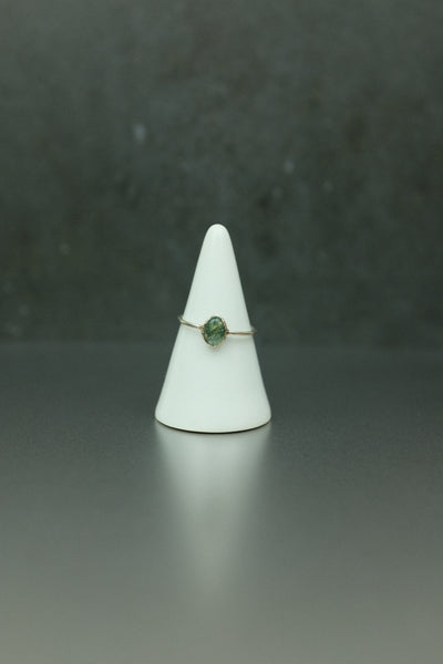 The moss agate measures approximately 6mm long, 4mm wide, and 3mm tall. Wear it alone for an elegant touch or stack it with others.