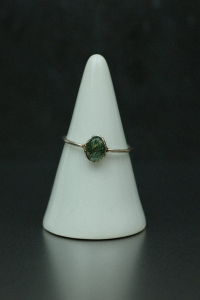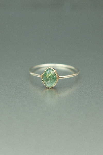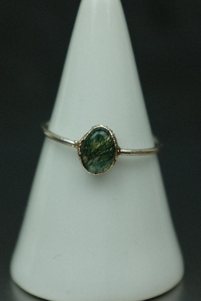 A simple yet striking moss agate electroformed silver-plated ring, perfect for everyday wear.