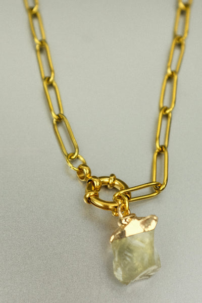 Raw and radiant – this Citrine charm necklace is a celebration of joy, abundance and self-belief. Each natural Citrine point is left unpolished to preserve its golden, sunlit energy. Hung on an 18" chain with a carabiner clasp that opens, it’s easy to personalise by adding more charms over time. A bright, uplifting daily piece designed to attract success and spark confidence.