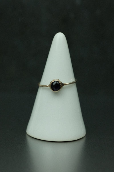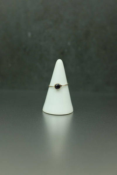 The amethyst stone measures approximately 4mm long, 4mm wide, and 3mm tall. Wear it alone for an elegant touch or stack it with others.