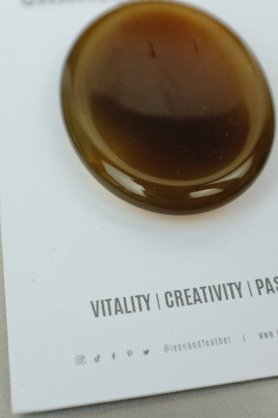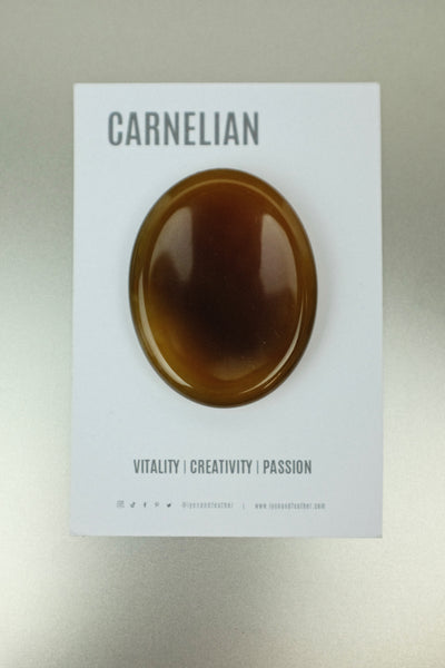 A polished carnelian thumb (worry) stone with a soothing indent—perfect for meditation, creative bursts, or calming anxious moments on the go.