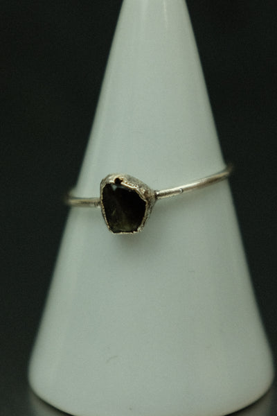 A simple yet striking golden obsidian electroformed silver-plated ring, perfect for everyday wear.