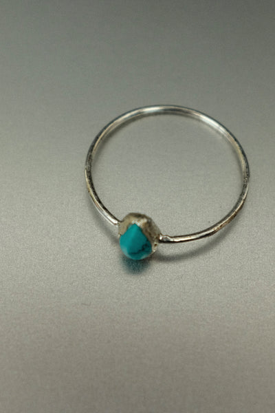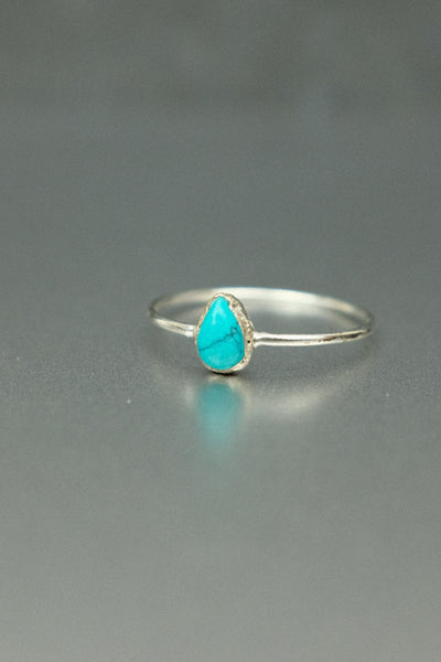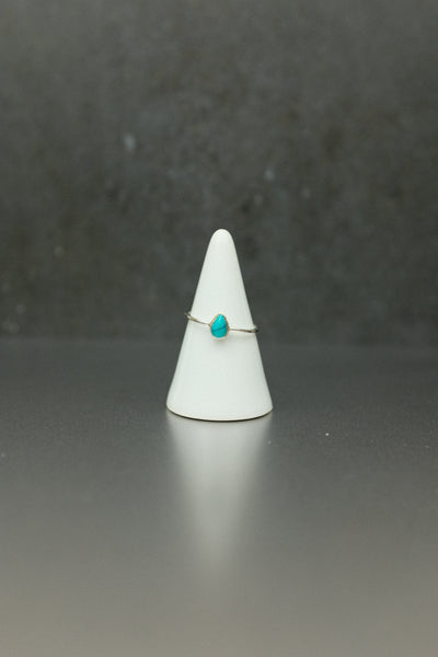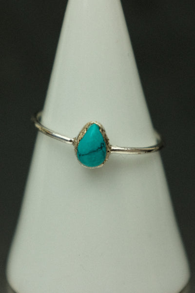 The turquoise stone measures approximately 5mm long, 3mm wide, and 4mm tall. Wear it alone for an elegant touch or stack it with others.