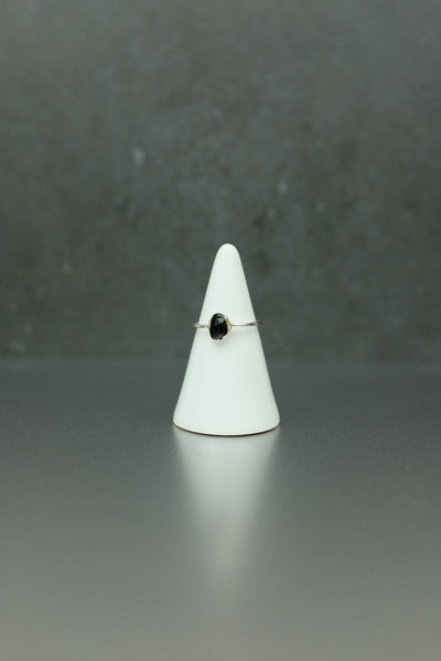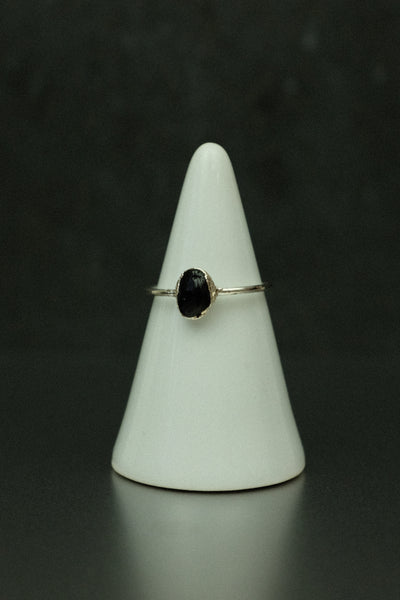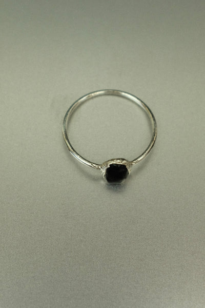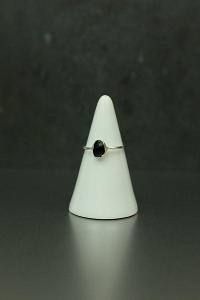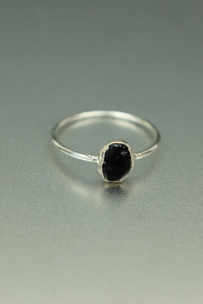 A simple yet striking black golden tourmaline electroformed silver-plated ring, perfect for everyday wear.
