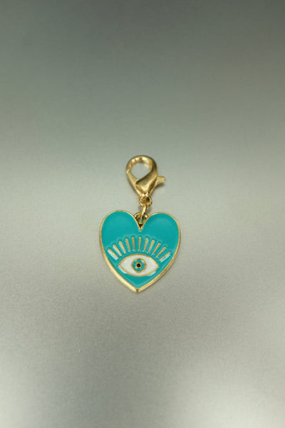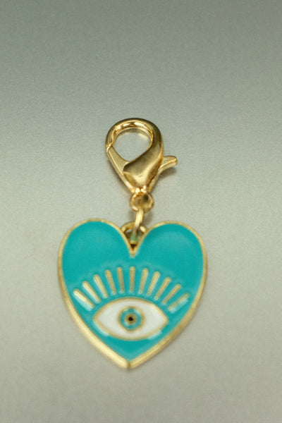 Gold Turquoise Heart Evil Eye Bag Charm • Enamel Clip-On Talisman